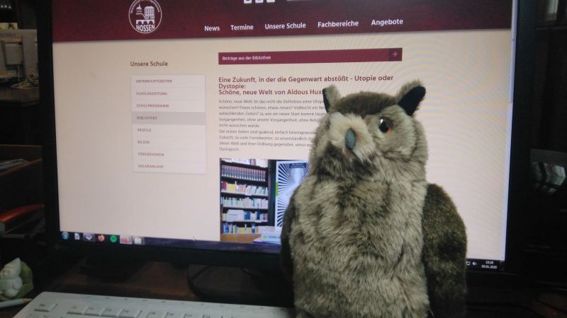 Wer die liebenswerte Eule noch nicht kennt, sollte das schnell nachholen. Sie residierte bereits vor einigen Jahren in unserer alterwürdigen Bibliothek. Nach langer Zeit bezieht der Eulerich nun wieder seine liebste Buchhöhle.