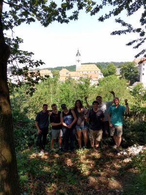 Wie in jedem Jahr sollen - und wollen natürlich! - die SchülerInnen der Abgangsklassen einen halben Tag gemeinnützig tätig sein. Ganz im Sinne unseres Schulmottos "Gemeinschaft - Leistung - Lebensfreude" zogen also an einem heißen Junitag motiviert und tatkräftig fünf Männer und eine Frau, bewaffnet mit Sägen, Macheten, Astscheren, Beilen und Zeckenspray, begleitet von einem Lehrer, in den Nossener Stadtwald am Rodigt. Unser Ziel war es, die zugewucherte Aussicht auf Stadt und Schloss zumindest so frei zu schneiden, dass sie ihren Namen "Stadtblick" wieder verdient.