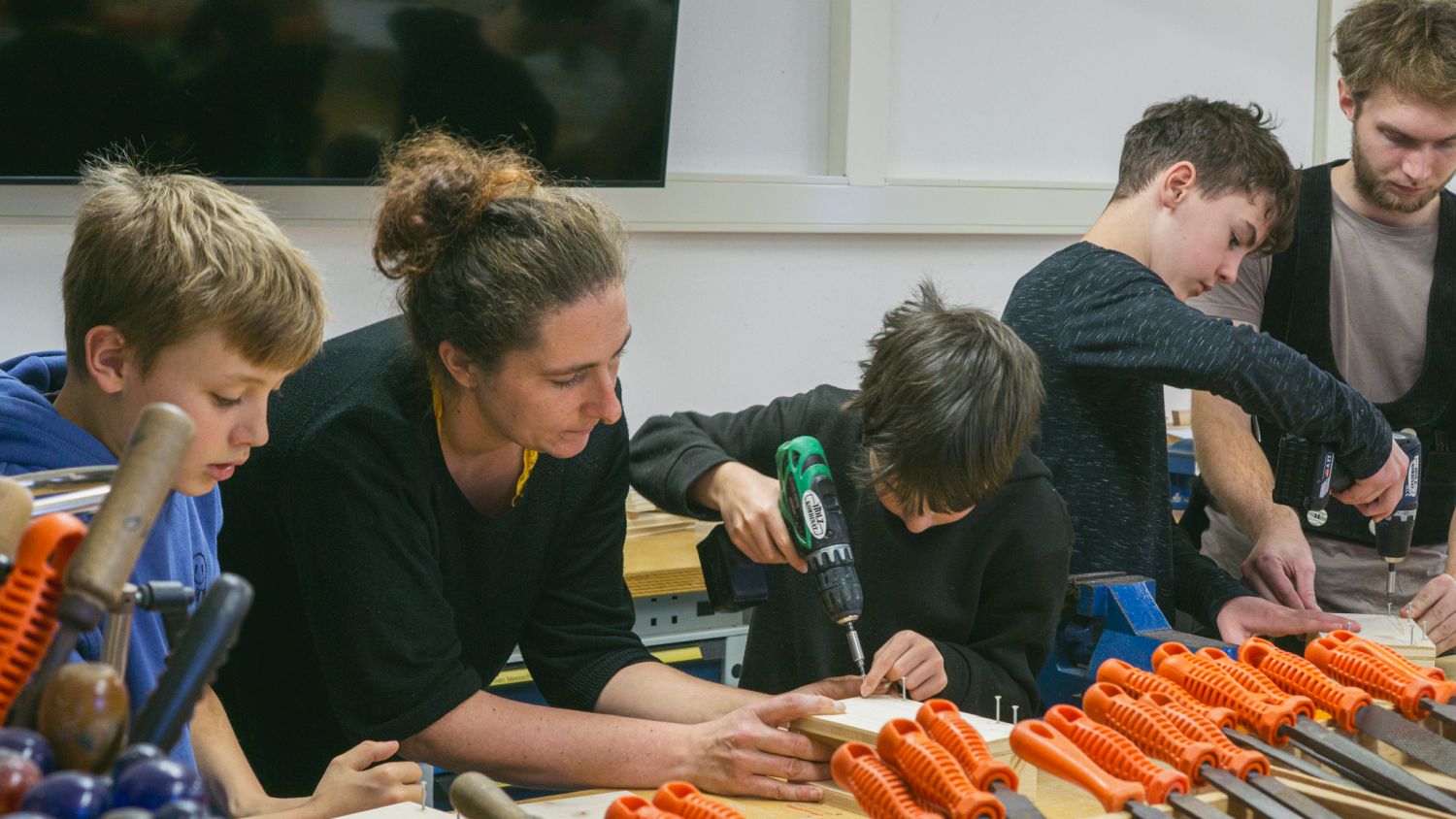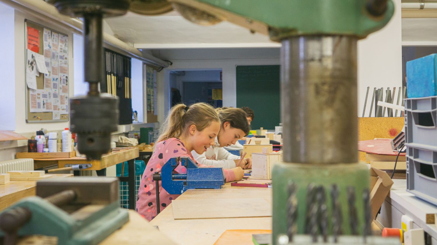 Der Projekttag setzte sich aus 4 Stationen zusammen, an denen die Schülerinnen und Schüler der 6. Klasse verschiedene Aspekte der chinesischen Kunst und Kultur kennenlernen konnten. So begleitete im Werkraum ein Team der Projektwerkstatt Holzkombinat die Lernenden bei der Herstellung einer Holz-Schatulle und der Verzierung mit einer Buddha-Figur auf einer Lotusblüte. Dazu wurden in einer ersten Station alle Bauteile von den Kindern selbst abgeschliffen, gebohrt, geklebt und zusammengeschraubt. Die Verzierungen wurden dann in einer zweiten Station individuell gestaltet und auf dem Deckel der Schatulle angebracht.