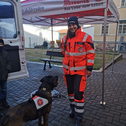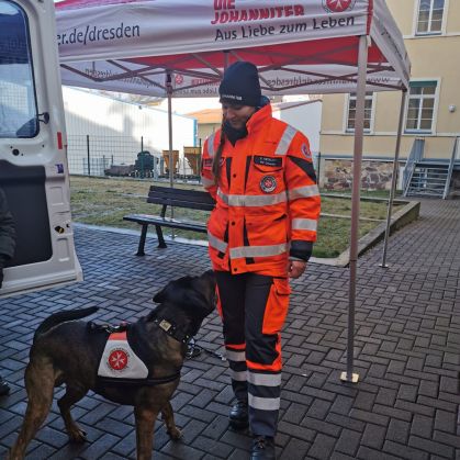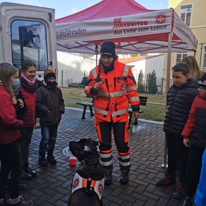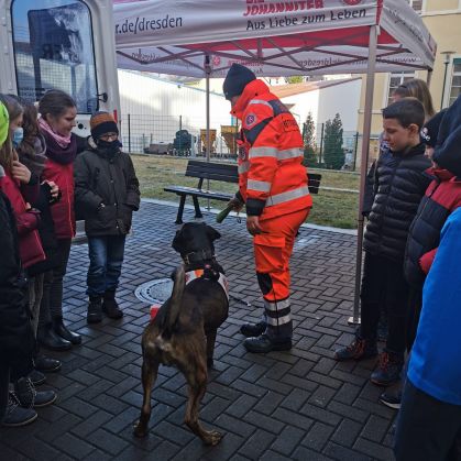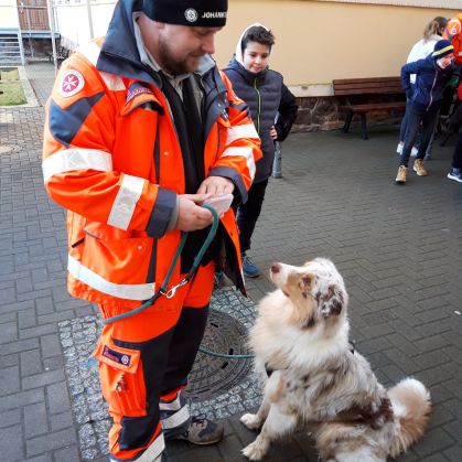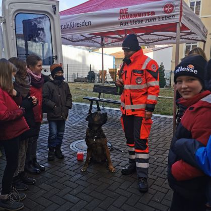 Besondere Alltagshelden sind Menschen, die ehrenamtlich tätig sind. Für uns war es deshalb ein Höhepunkt, dass die Kameradinnen und Kameraden der Freiwilligen Feuerwehr Nossen, der Wasserwacht Meißen, der Johanniter aus Meißen und der Rettungshundestaffel der Johanniter aus Dresden unsere Gäste waren. Sie präsentierten ihre Technik und ihre felligen Gefährten und berichteten von ihrer verantwortungsvollen Tätigkeit.