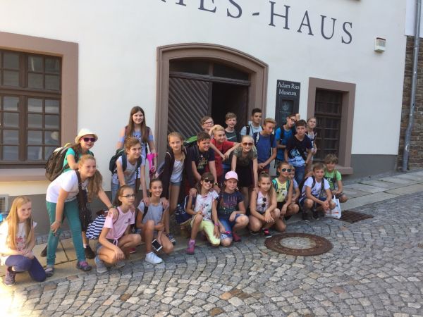 Um 10 Uhr war dann Nachtruhe. Also gingen wir ins Bett und schliefen uns aus. Um 7 Uhr weckte Herr Heilmann uns. Nach einem leckeren Frühstück im Speisesaal und nachdem wir unsere Lunchpakete bekommen hatten, ging es bald los nach Annaberg. Dort liefen wir als erstes ins Adam Ries Museum. Das war langweilig! Doch nun durften wir noch durch die Annaberger Innenstadt bummeln. Dort kauften wir ein Geburtstagsgeschenk für Josephine. Nach einer Dreiviertelstunde liefen wir alle zusammen zur Annenkirche, das war sehr interessant. Als Höhepunkt des Tages bestiegen wir den Kirchturm der Kirche. Wir hatten eine sehr gute Aussicht, auf Annaberg und Umgebung. Beim genaueren Betrachten konnte man sogar die Augustusburg sehen. Dann stiegen wir die 76 m wieder runter. Danach durften wir noch einmal shoppen gehen.