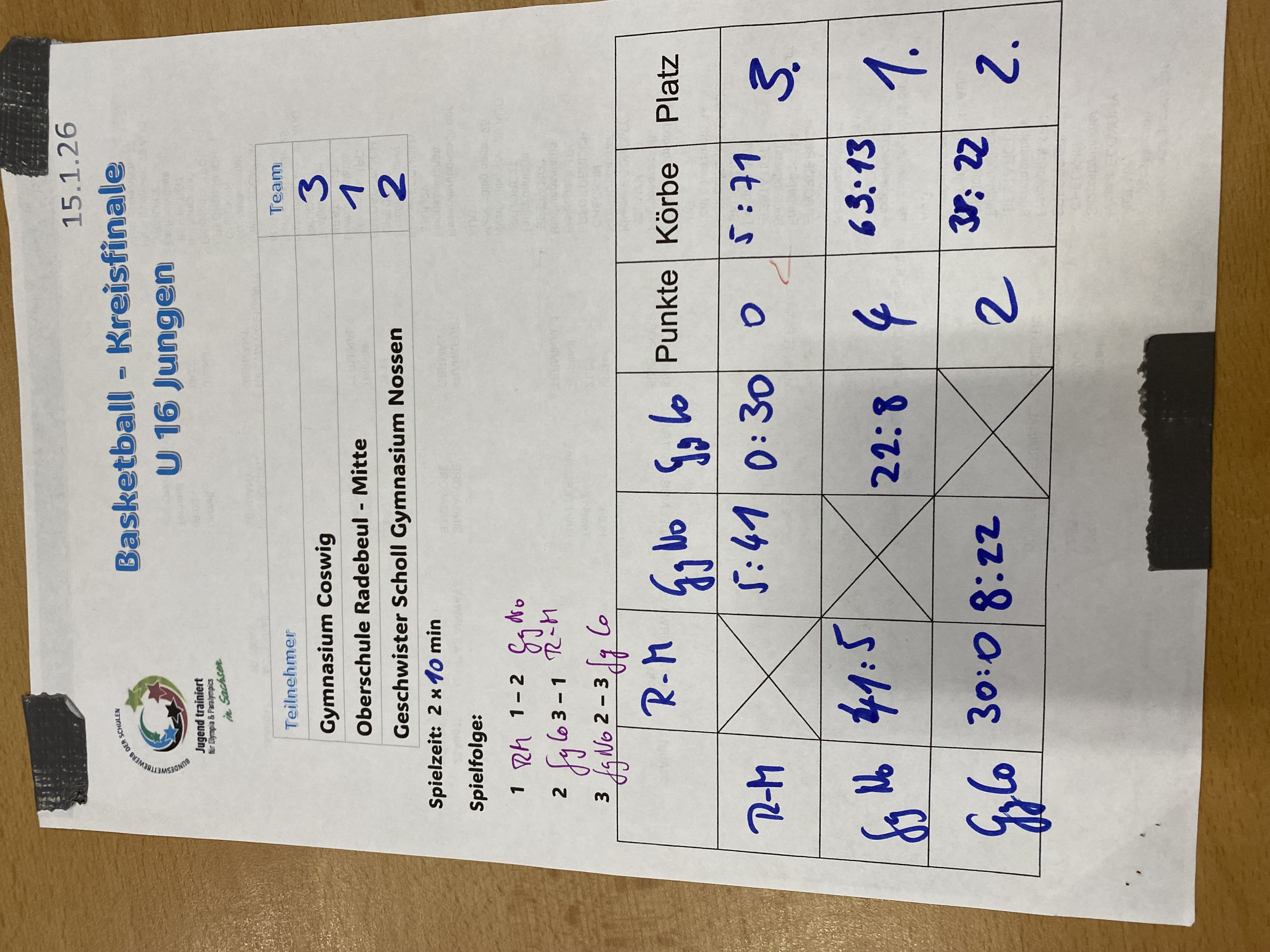 Milo Knorr, Lennard Güldner, Paul Lehmann, Benno Miserski, Edgar Thiele und Sebastian Fetov spielten am 15.01. 26 in Coswig gegen die Vertretungen der Gastgeber sowie der OS Radebeul Mitte.