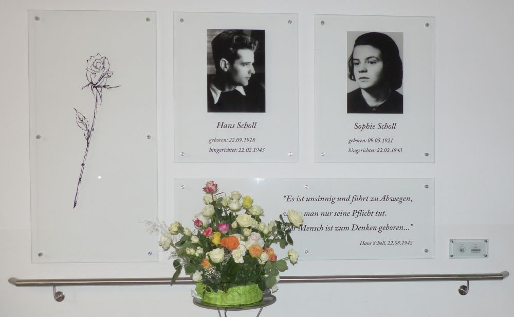 Aus dem Aufruf „Im Gedenken an Hans Scholl zum 100. Geburtstag stiftet jede Klasse eine Rose.“ entstand ein weiß-bunter Geburtstagsstrauß.