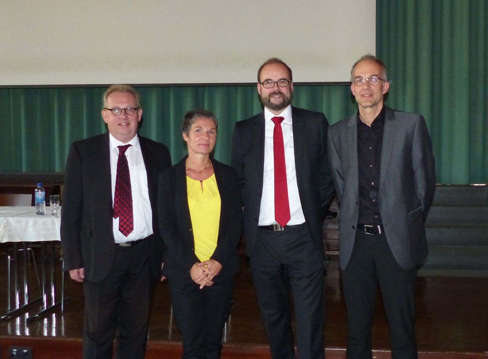 Herr Staatsminister Piwarz (2.v.r.) mit Frau Palluch (2. Vorsitzende VGS), Herrn Dr. Heinrich (Referatsleiter Gymnasien im Kultusministerium, links) und dem Schulleiter Herrn Dr. Xylander (rechts).
