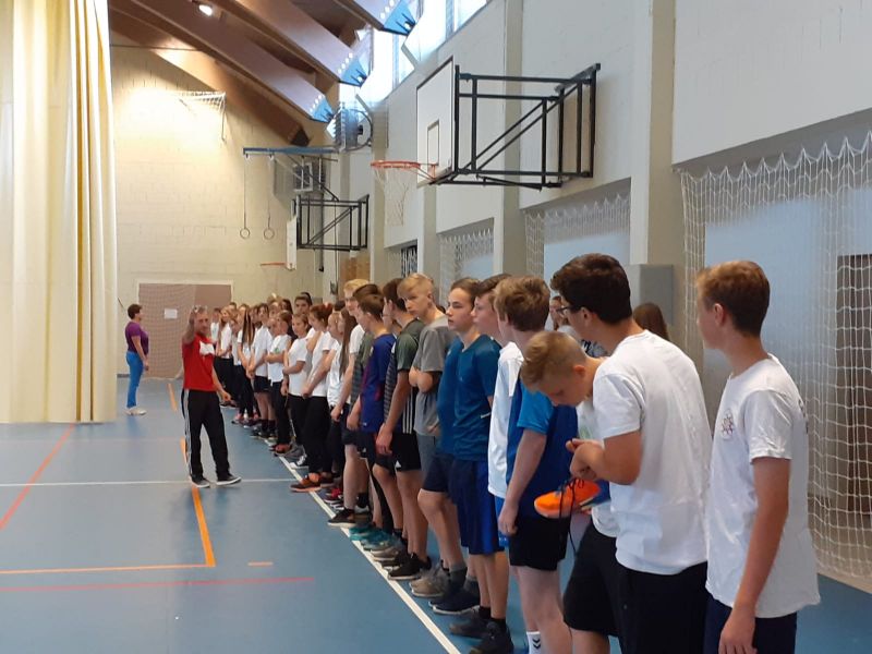 Antreten und Einweisung zu Beginn des Sportunterrichtes