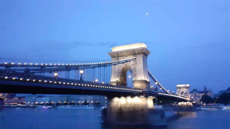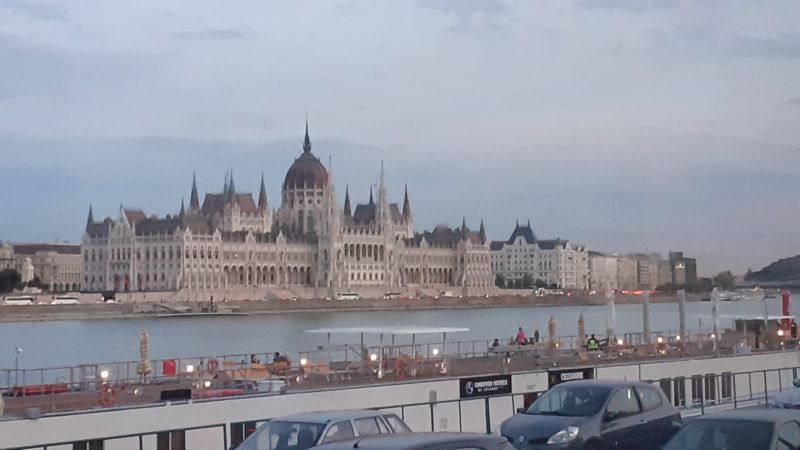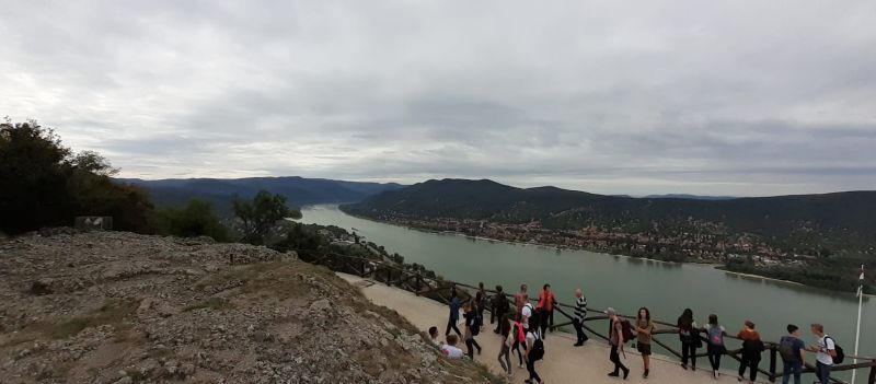 Nach dem morgendlichen Treff in der Schule ging es mit dem Bus gen Norden nach Visegrad, wo die Donau um eine Landzunge herum einen Halbbogen schlägt - auch das Donauknie genannt. Mit dem Vater einer ungarischen Gastgeberin stiefelten wir zur mittelalterlichen Burg hinauf, von der aus im 14. Jahrhundert die ungarischen Könige ihr Reich regierten. Sehr beeindruckend. Der Weg führte uns weiter zu einem Aussichtsturm in der Nähe, von dem aus wir eine tolle Sicht auf Visegrad, die Burg und das Donauknie genießen konnten. Nach einem labenden Eis (jedenfalls für die meisten) fuhren wir nach Szentendre, einem hübschen Städtchen mit kleinen Kopfsteinpflastergassen, mit Souvenirgeschäften und einer Promenade entlang der Donau - und auch mit Langós oder Lavendeleis. Auf dem Rückweg Richtung Dabas konnten wir das nächtliche Budapest bewundern, vor allem das angestrahlte Parlament, die Kettenbrücke, das Nationaltheater und den Palast der Künste. Mit der Rückkehr in Dabas kurz vor 20 Uhr ging ein erlebnisreicher, langer Tag zu Ende.