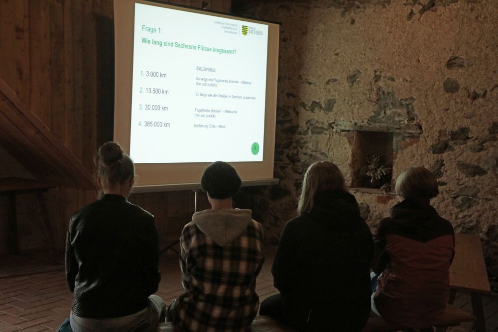 Welche Lebewesen leben im Fluss? Was macht einen „guten Gewässerzustand“ aus? Wieviel Wasser fließt normalerweise durch die Mulde? Wie viel ist es bei Hochwasser? Und wie werden im Ernstfall die Sandsäcke richtig gestapelt?