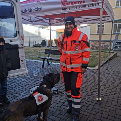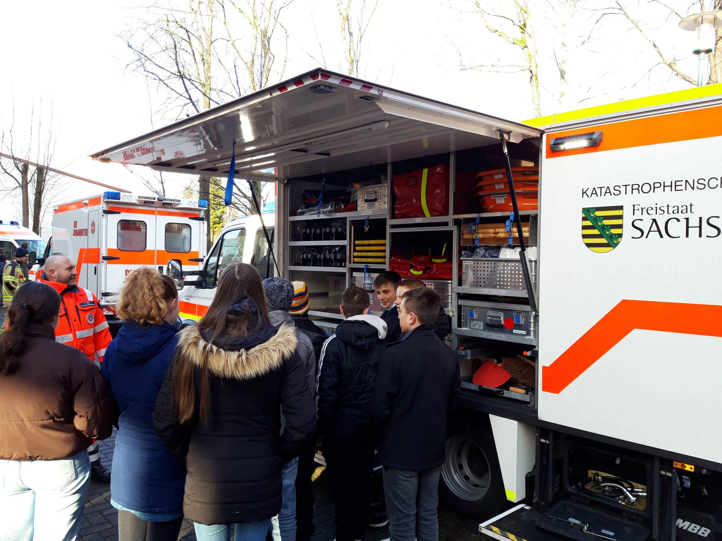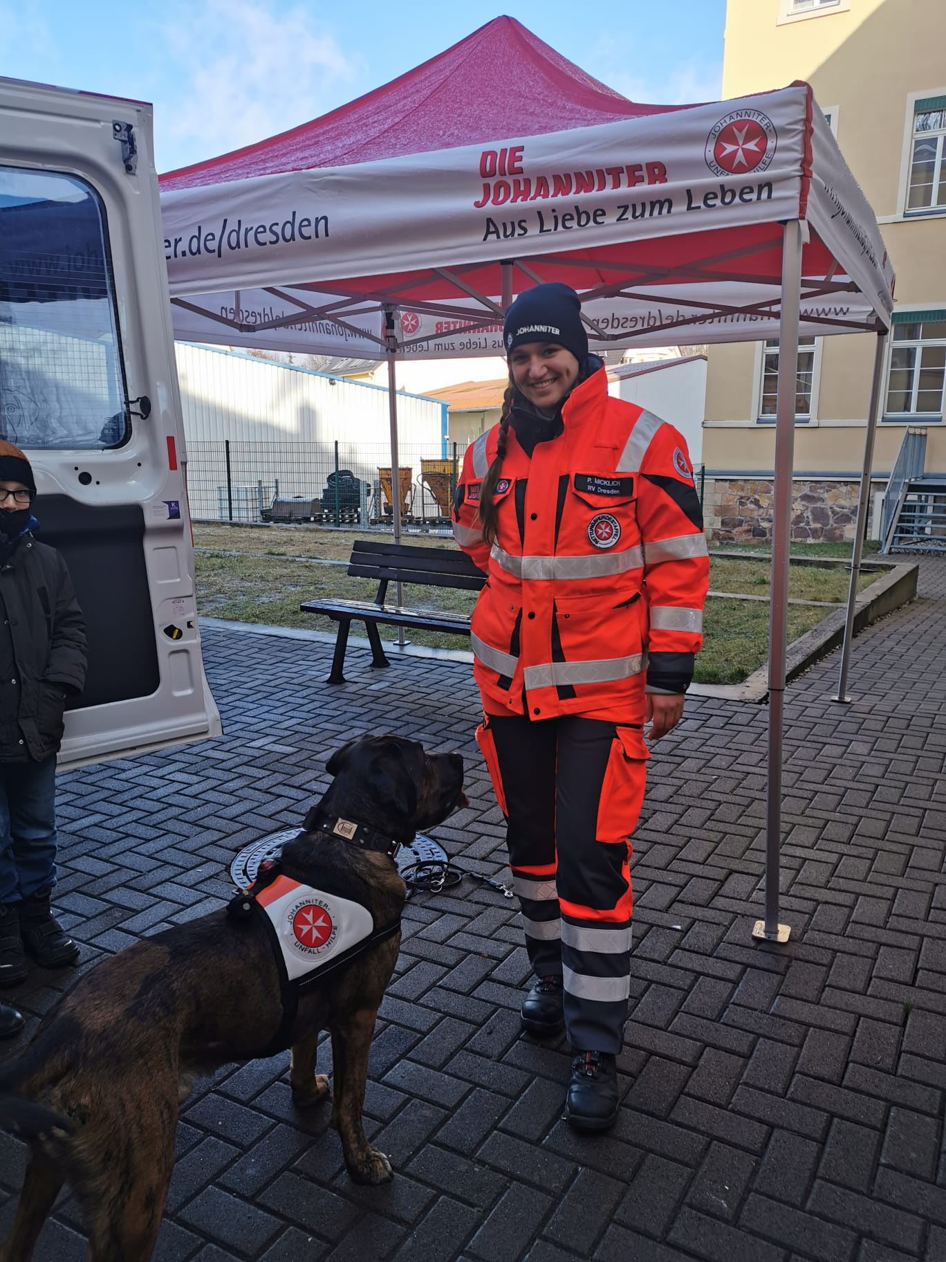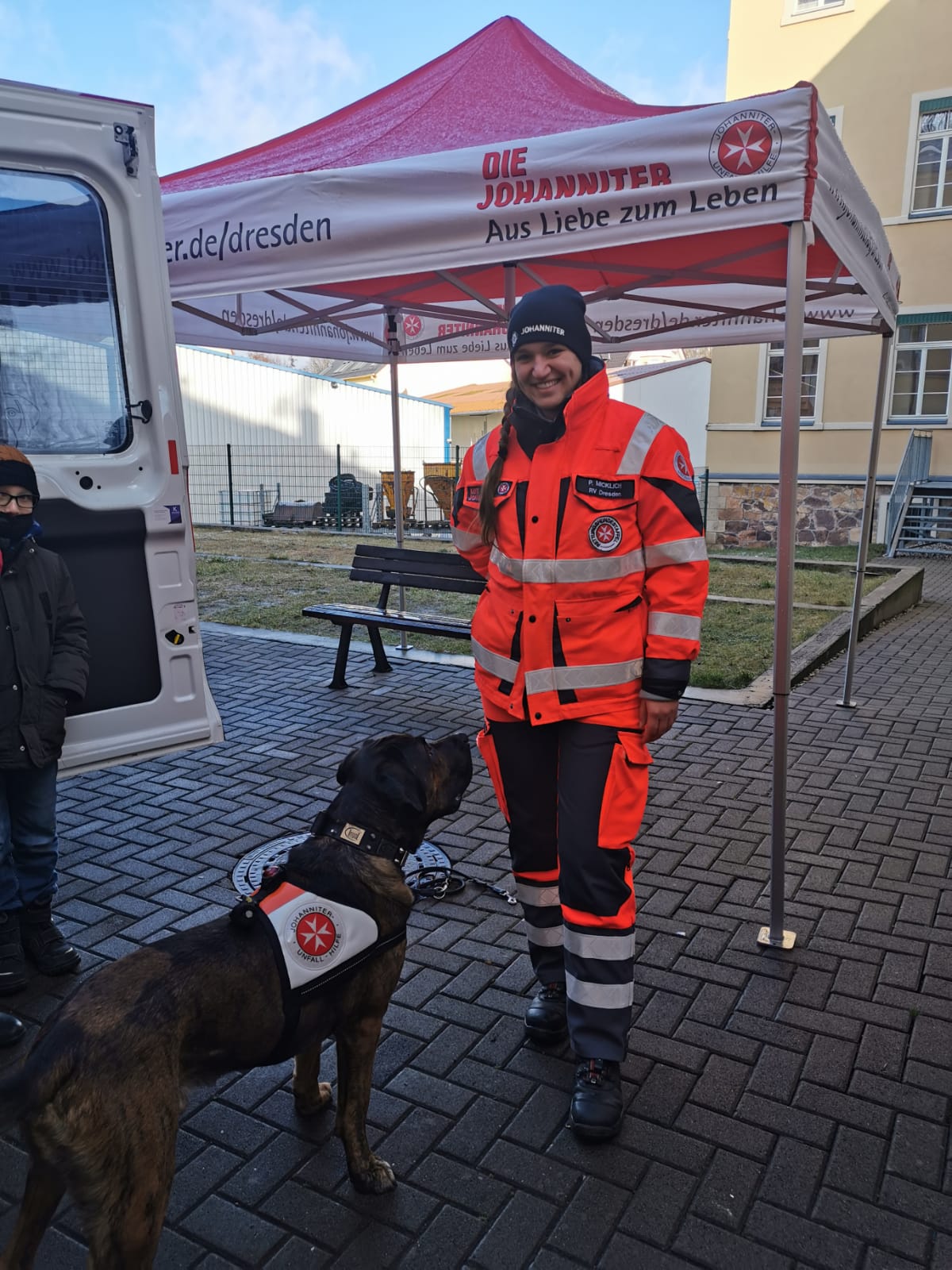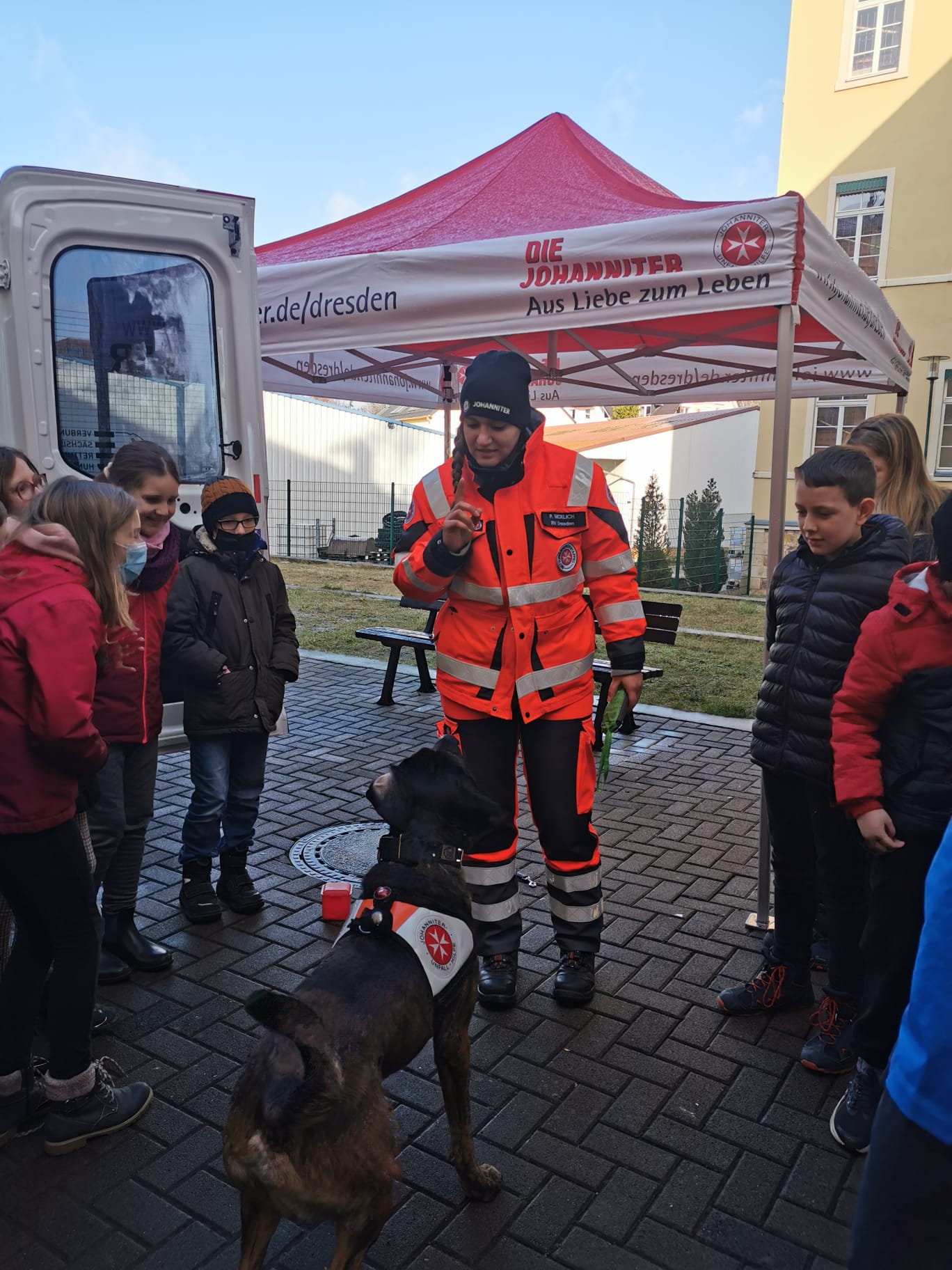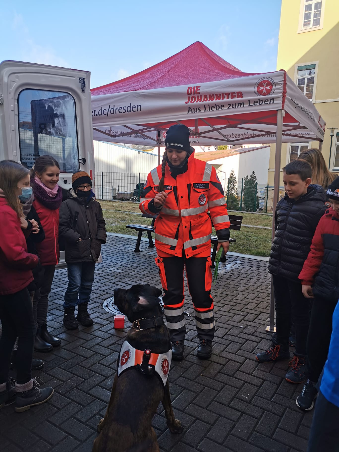 Besondere Alltagshelden sind Menschen, die ehrenamtlich tätig sind. Für uns war es deshalb ein Höhepunkt, dass die Kameradinnen und Kameraden der Freiwilligen Feuerwehr Nossen, der Wasserwacht Meißen, der Johanniter aus Meißen und der Rettungshundestaffel der Johanniter aus Dresden unsere Gäste waren. Sie präsentierten ihre Technik und ihre felligen Gefährten und berichteten von ihrer verantwortungsvollen Tätigkeit.