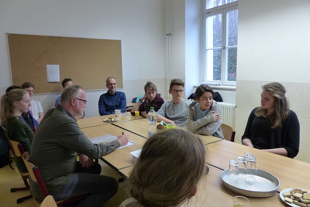 Am Mittwoch, den 16.01.2019 trafen sich Organisatoren der Gruppe „Schule ohne Rassismus, Schule mit Courage“ mit ihrem Paten Henning Homann, stellvertretender Fraktionsvorsitzender der SPD im Sächsischen Landtag. Bei einer gemütlichen Runde mit Saft und Keksen berieten wir gemeinsam mit unserer Schulleitung sowie den Ansprechpartnern (Herr Gnauck, Frau Soltysiak) unseren Plan für den Tag der Zivilcourage. Henning Homann, der sich bereits im bundesweiten Netzwerk für Demokratie und Courage einbrachte, eröffnete uns neue Ideen. Auch die Möglichkeiten, Demokratie in den Unterricht einzubinden oder die anstehenden sächsischen Landtagswahlen waren ein Thema.