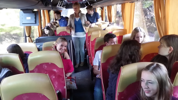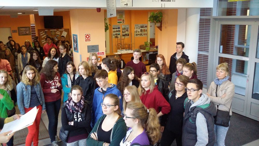 Am frühen Morgen trafen wir uns in unserer Partnerschule wieder - trotz kurzer Nacht alle mit einem Lächeln im Gesicht. Dem Schulrundgang durch das Gymnasium folgt gerade der Besuch in verschiedenen Unterrichtsstunden.