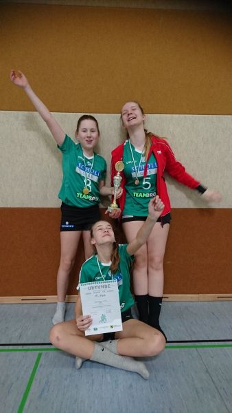 Ein großes Dankeschön und ein herzlicher Glückwunsch gehen an Finnja Pietzsch (Kl. 7/3), Merle Buchsteiner (Kl. 6/1) und vor allem an Mia Weigelt (Kl. 5/1), die gleichzeitig als beste Spielerin des Turniers ausgezeichnet wurde. Eine Superleistung! Jetzt heißt es "Daumen drücken" für das Landesfinale in Grimma! Vielleicht gelingt dort wieder der "große Wurf": die erneute Qualifikation für die Deutschen Schulmeisterschaften.