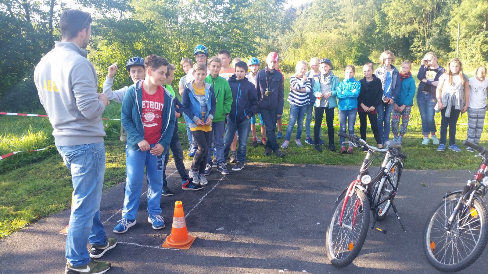 Die Schüler, die nicht bei der Gefahrenbremsung teilnahmen, schauten zu. 12.05 Uhr war Schluss. Der diesjährige Verkehrssicherheitstag war ein schönes Erlebnis, da er lehrreich und praktisch zugleich war. Leider gab es zwei Verletzte. Der Sturz vom Fahrrad verursachte blaue Flecke und eine blaue Zehe.