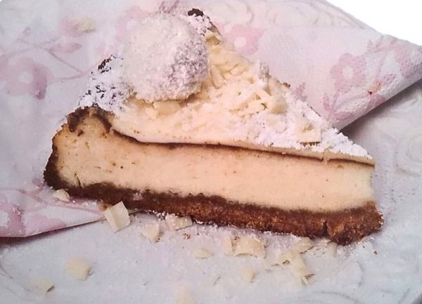 10. Nachdem die Torte fertig gebacken ist, kannst du sie mit Kokoskugeln, weißer Raspelschokolade und Puderzucker verzieren, damit sie noch winterlicher aussieht.