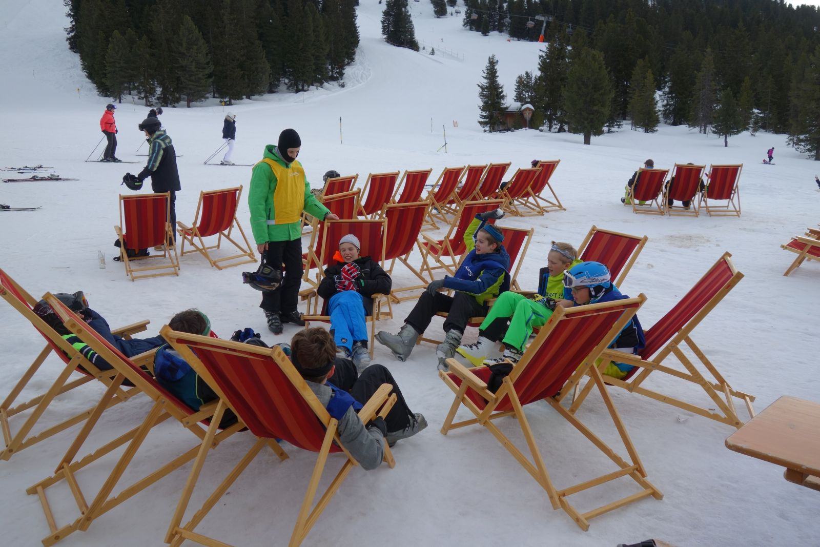 Nach etwa drei Stunden straffen Skifahren stand das Mittagessen an, Backfisch mit Pommes. Für die „fortgeschrittenen Anfänger“ ging es nach der Mittagspause schon auf die blaue Piste zum Schlepplift. Dort haben wir dann eine einfache aber effektive Methode zum langsamen Abfahren der Piste ermittelt. Die Anfänger blieben erst einmal am Kinderhügel, um weiter an ihren Techniken zu feilen.