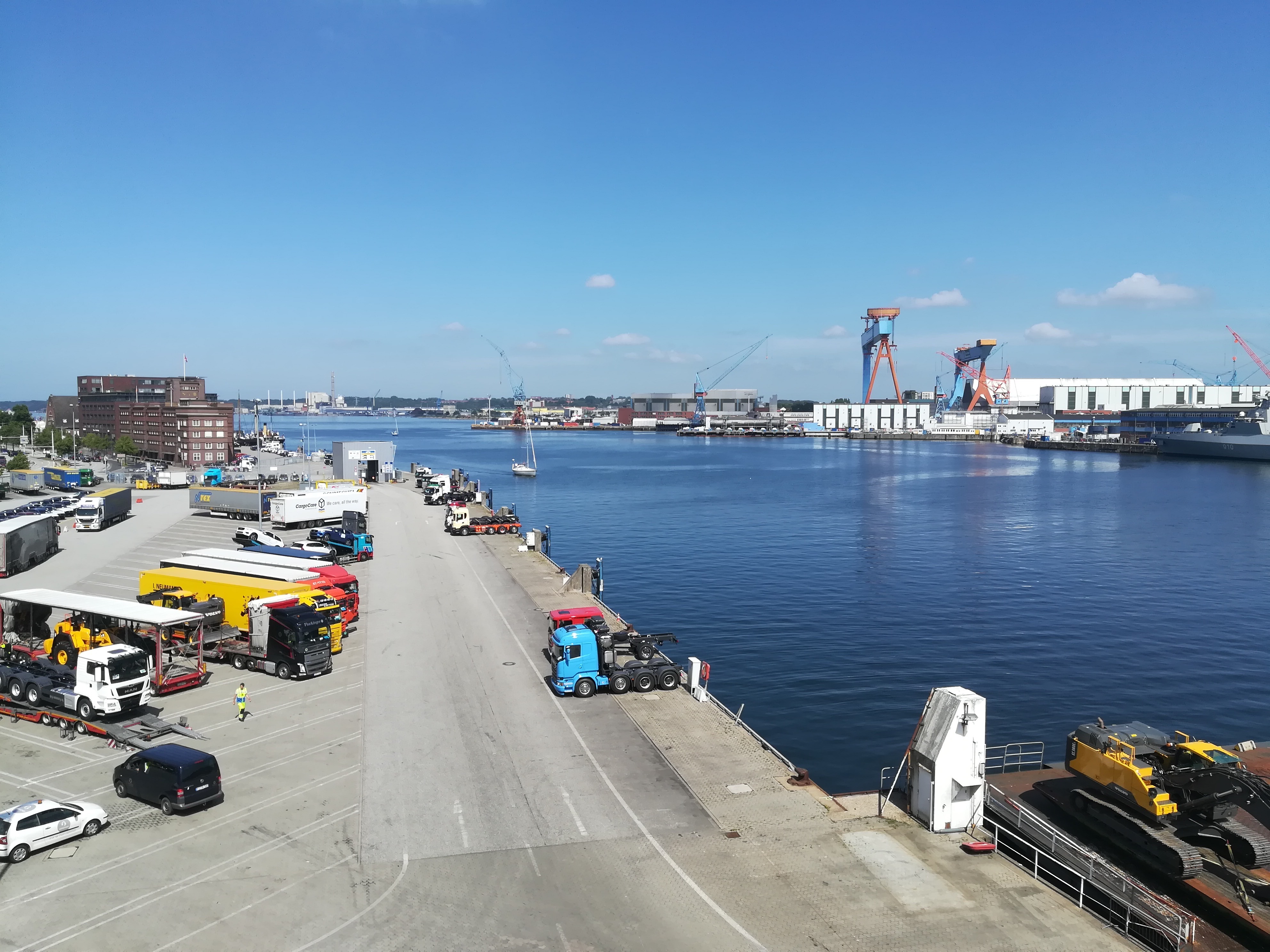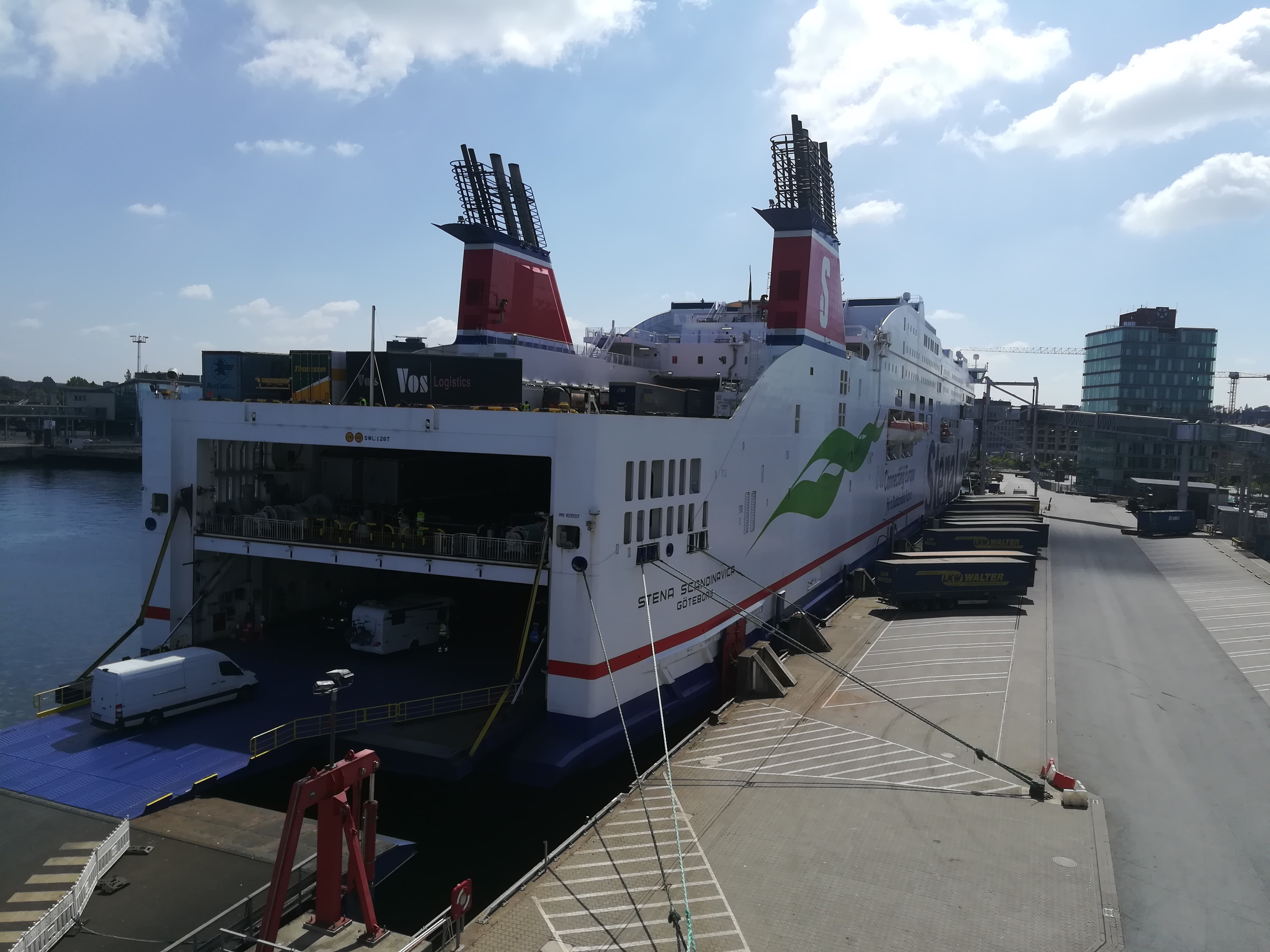 Auf einem Rooftop, direkt am Hafen gelegen, konnten wir die Abfertigung und die Beladung der Stena Scandinavica mit bestem Blick beobachten.